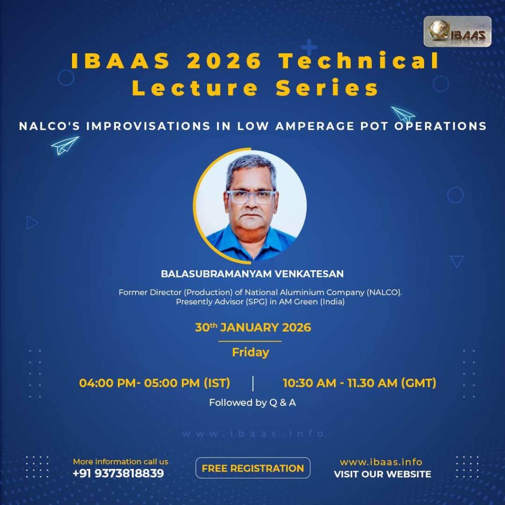 We are excited to announce the resumption of the IBAAS Technical Lecture Series. Join us for engaging and informative lectures on the latest advancements in bauxite, alumina, aluminium technology and downstream industry .